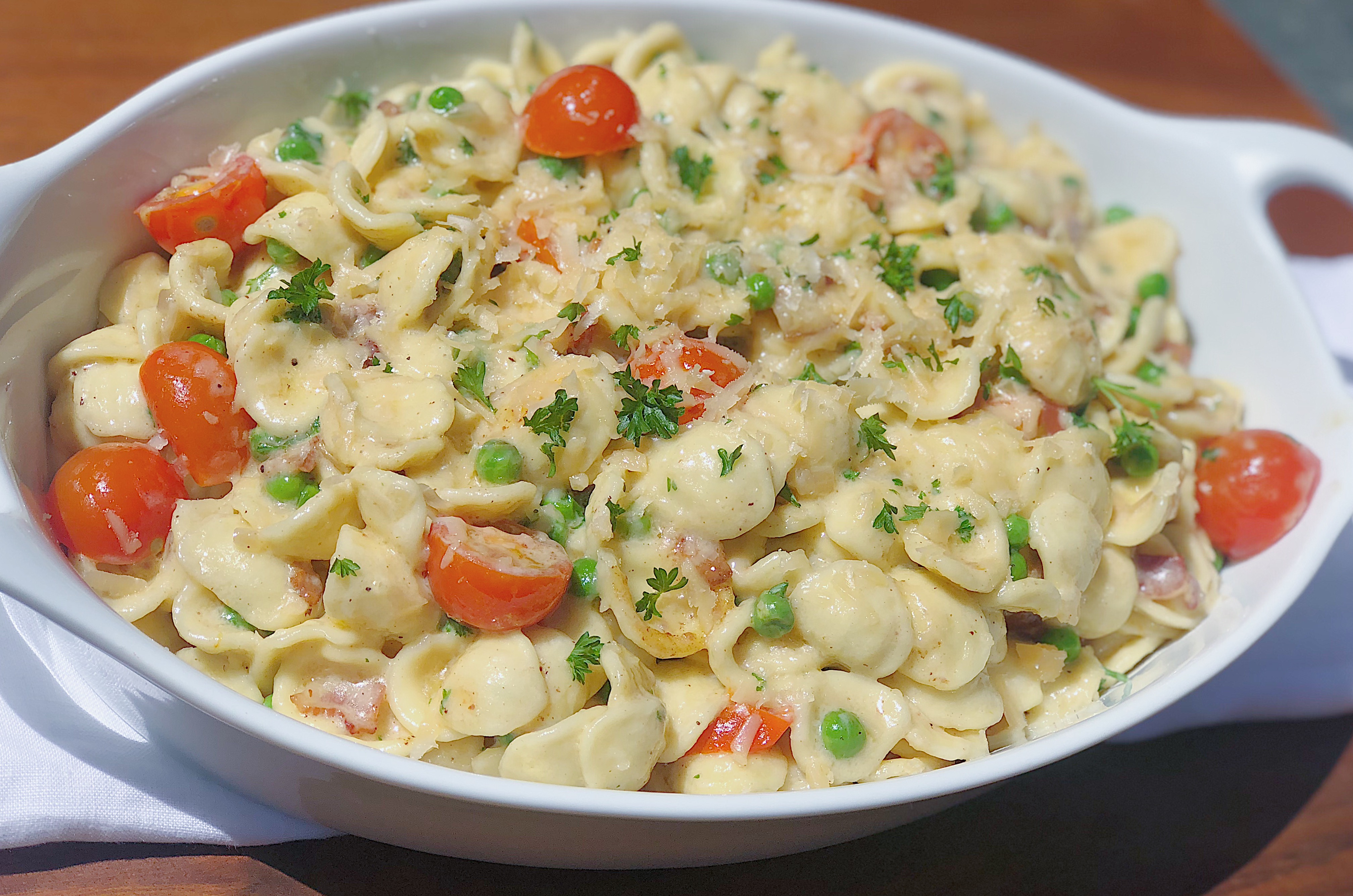 Orecchiette Pasta with English Peas & Cherry Tomatoes